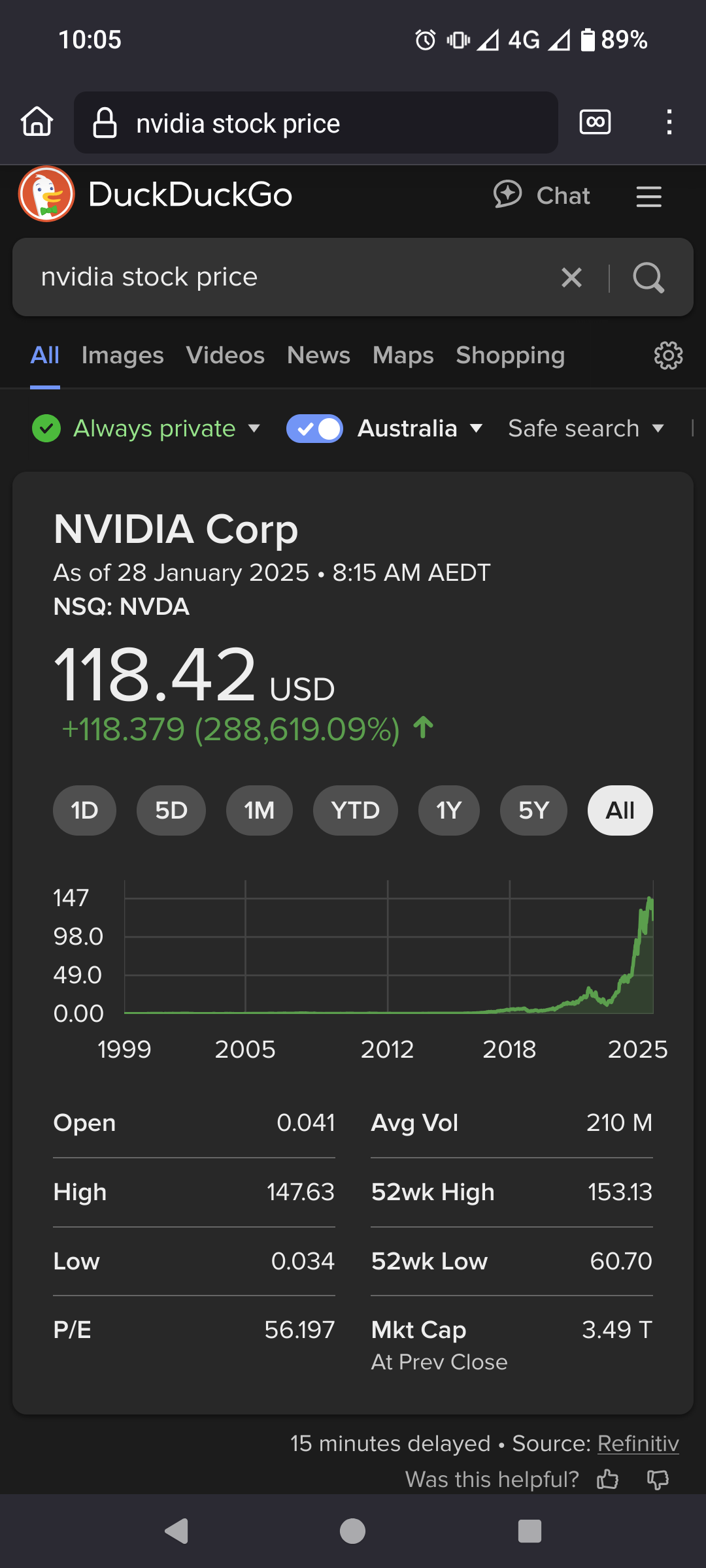 Also time scales matter. In the last year nvidia is still up 89% over the last year which is just ridiculous.