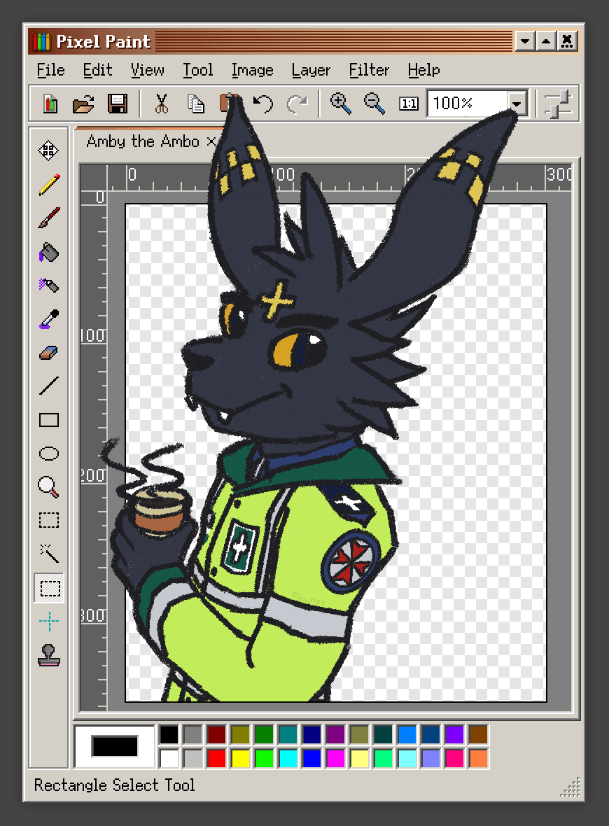 Drawn in Krita, then composited in GIMP. Features Pixel Paint from SerenityOS.