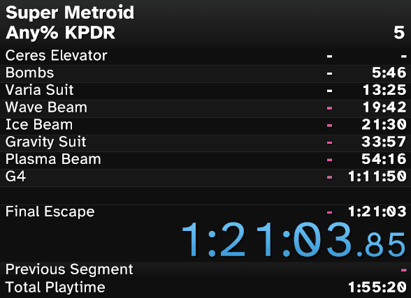 The first splits are made, the stage is set. It’s 1:21:03.85 and I died to Draygon like 3 times