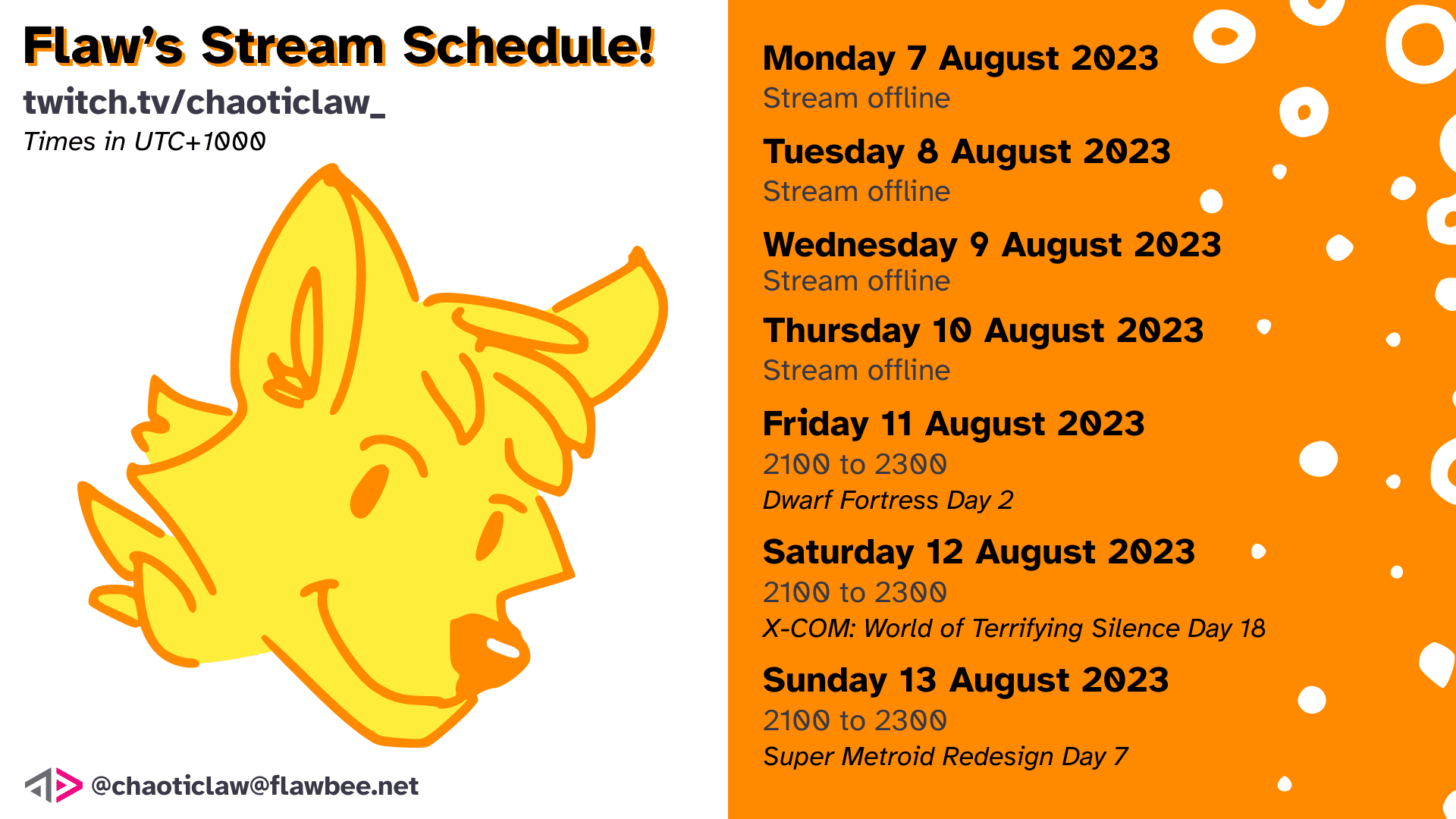 Stream schedule for this upcoming week (7 to 13 August 2023)!
