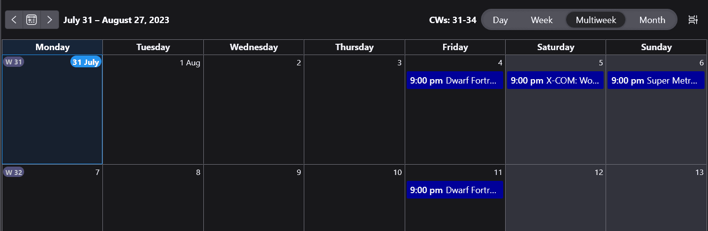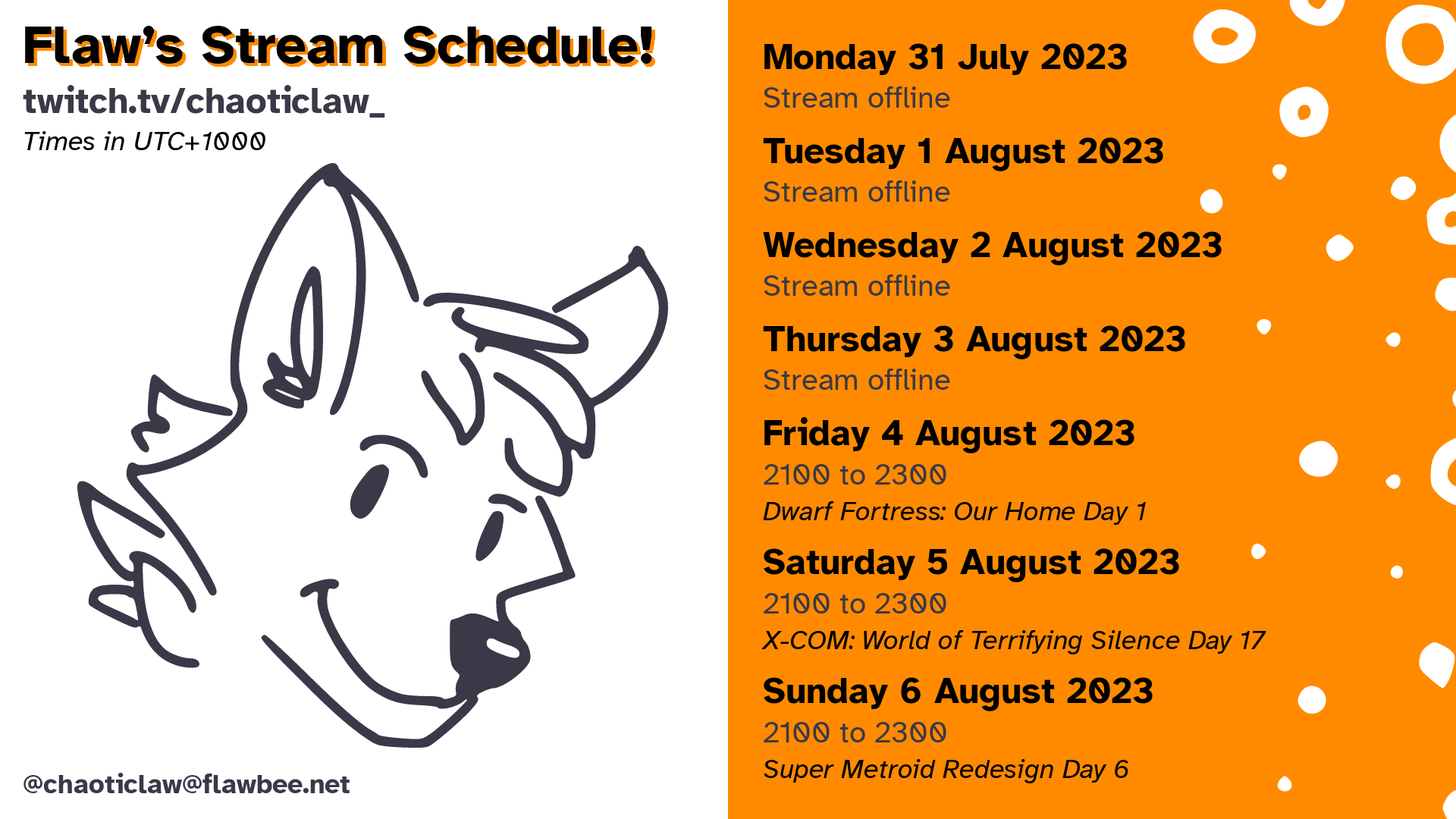 Stream schedule for this upcoming week (31 July to 6 August 2023)!