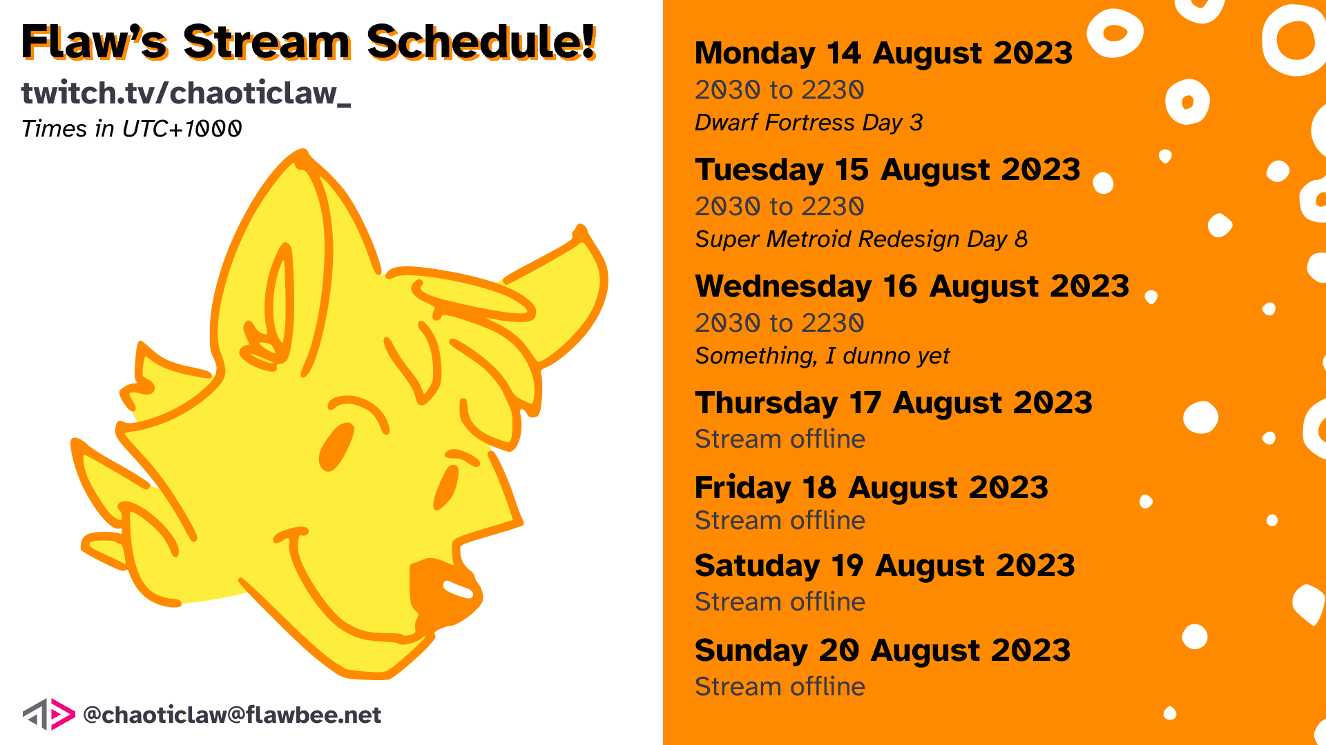 Stream schedule for this upcoming week (14 to 20 August 2023)!