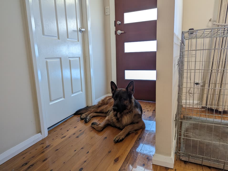 As a bonus, have a dog picture of Miller who spent his time wisely running around chasing birds in the yard while we were out, and was settled (a rare occurrence!) when we finally came home.