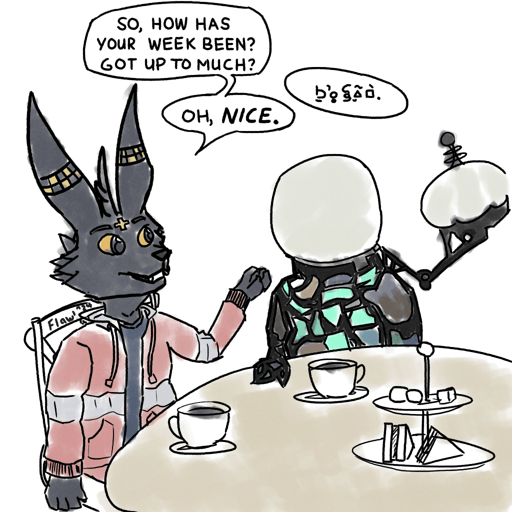 Dark types tend to get on well with some of the more odd organisms, and Amby is happy to have a chat to some of them over tea.