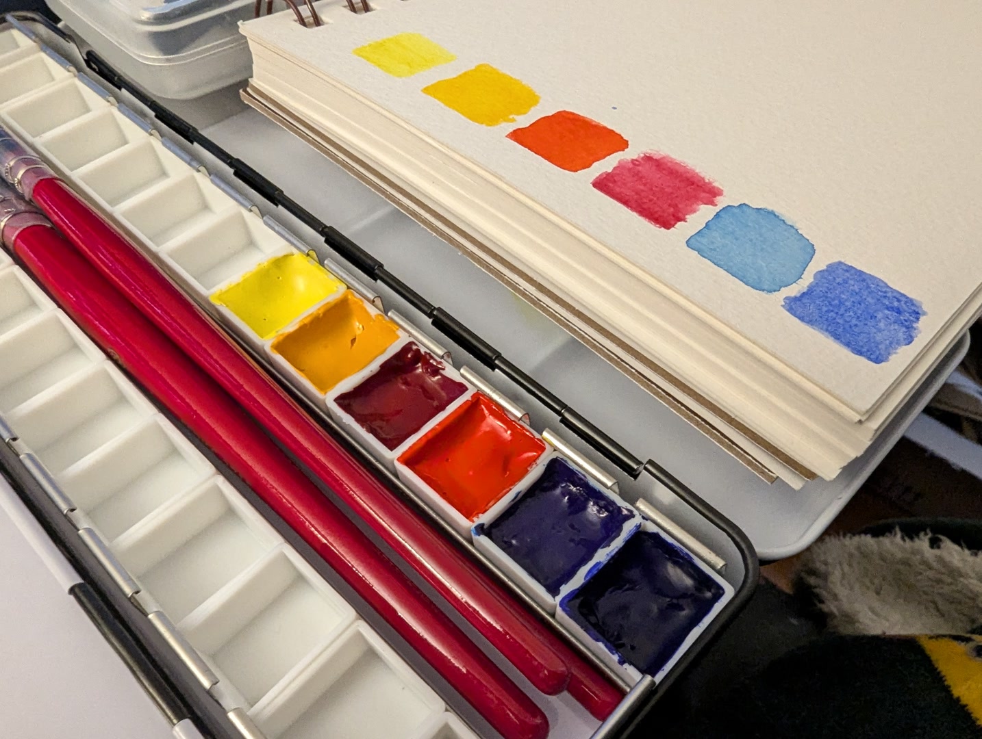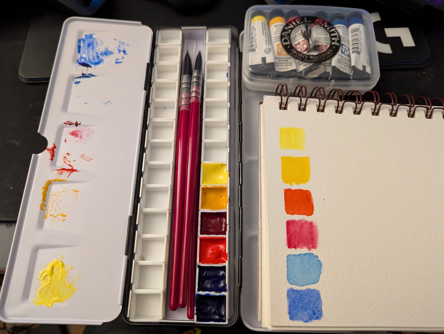 I cheaped out on the brushes and palette tin (and maybe the paper), but not on the paints lmao