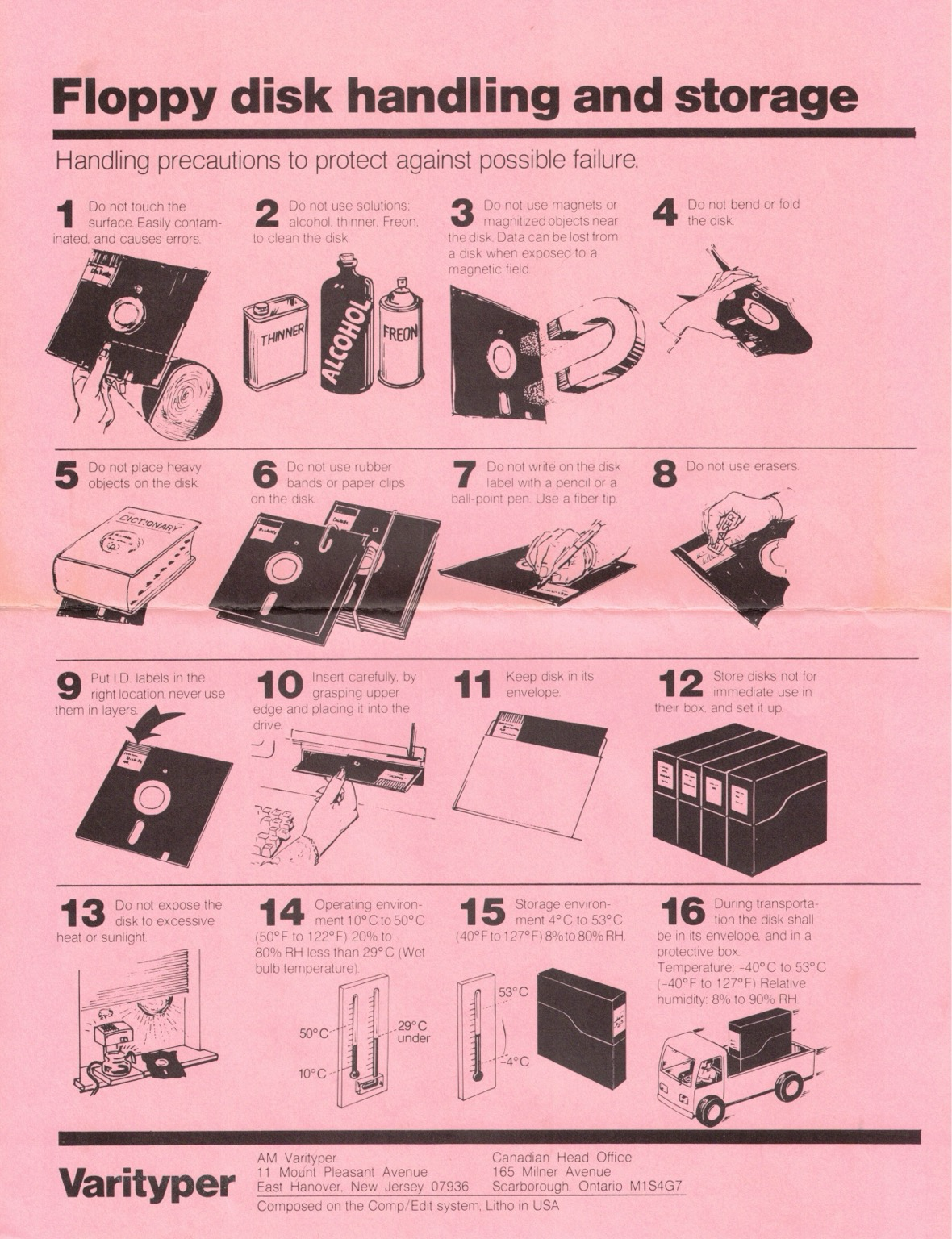 I have an old set of 8in floppy disks from 1985. They are digital type faces for the Comp/Edit system. This included document accurately describes the size of these disks, taking up the entire bed of a truck. #digipres